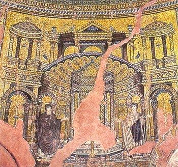 Put on natty city outfit and head for Thessalonica. Get to Eva's at 10:30, have coffee, meet grandmother, Soula. Set off with Soula, Eva and Nikos (Eva's brother) and, on the way to the car, visit an early Byzantine basilica (church with nave, aisles and apse only) called Acheiropoiétos ("not made by hand") - which may have referred to an almost all silver icon.
