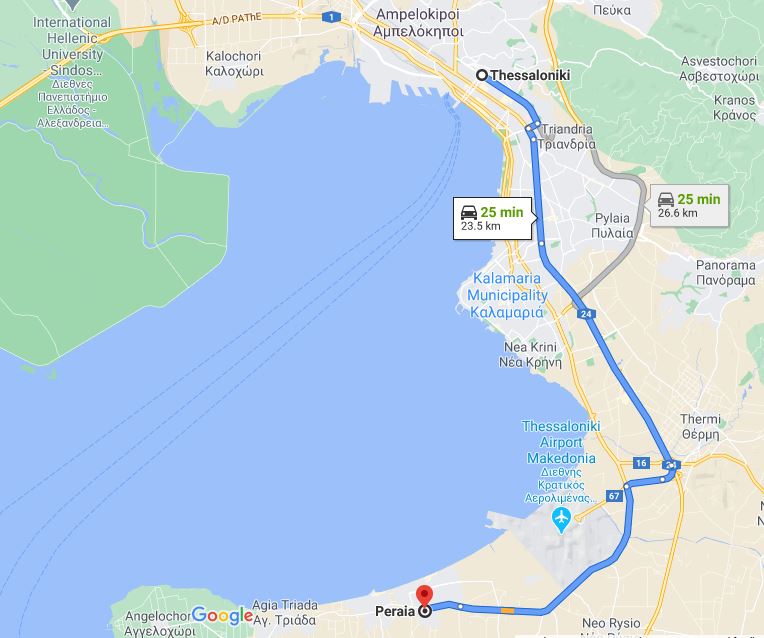 On the road again by 8am or so and into Larissa where we met a retired Scottish doctor. We visited the bank and the market where we found storks. On towards Thessaloniki arriving at Mercedes agent at midday. On the way we saw another little railway "bug" for taking the 'gang' to work. This one was completely covered in, the first one we saw had only a roof. As we crossed the River Liakimon some cows were fording in the opposite direction. Shades of the Wild West. Just before Nea Khalkidon a lorry was lying with its cab on its side and its rear wheels upright. The chassis was bent through a right angle!