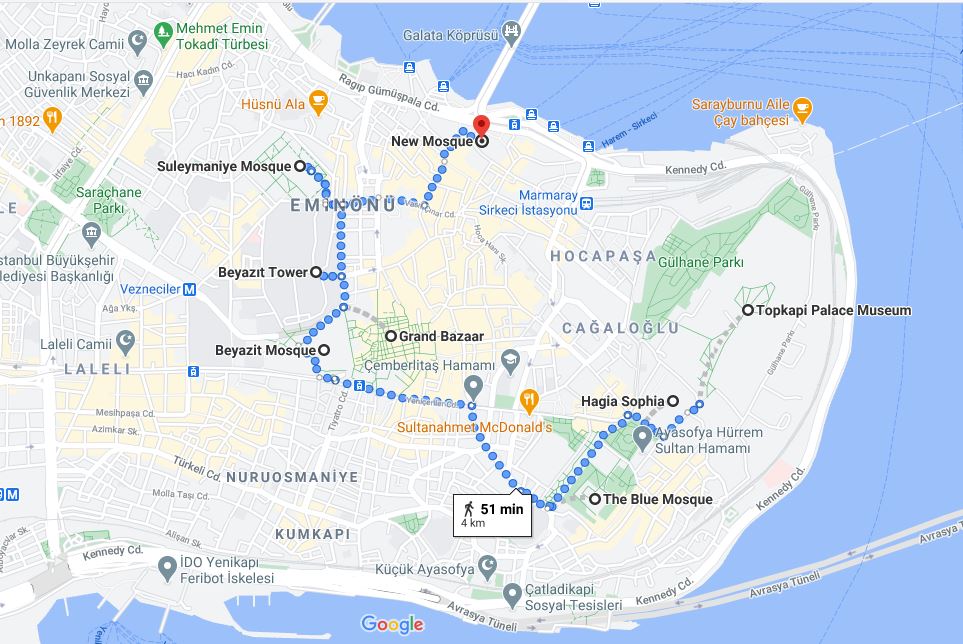 Where are we when it stops? Click here for Istanbul orientation. We are supposed to be at Aksaray Square (but this destination is undergoing major surgery) and we are in fact opposite the Grand Bazaar. What luck! It is one maze of small covered-in shops (not market stalls) and everywhere there are jewellers, puzzle rings are available in profusion. I have never seen a fraction of that number of jewellers in one area before. It is overwhelming. After looking at a small corner of the bazaar (and happening across Roger again) we set off for BP Building which is possibly 4km away.