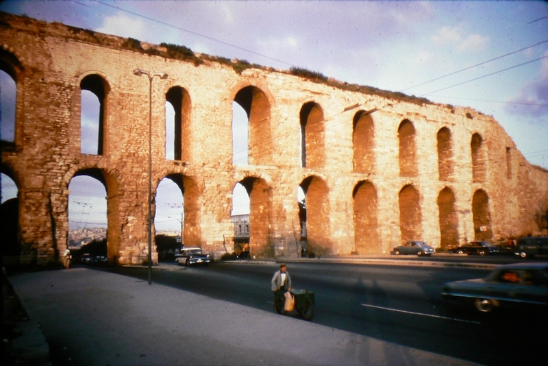 Time to go "home", but we must see the Valens Aqueduct. When we find it we are not very impressed, but pictures of it now look pretty good. We buy melon for 1.50 on the way to Aksaray Square to get the minibus. I get off at the local village shops while Brian goes back to camp. Bought rice, bread, wine, aubergine, lemon and meat (lamb from the leg). Back at camp Brian has curry cooking. It's excellent if a little tough, and we follow it with some wine. After which Brian makes poly bags for spice while I arrange lighting for boot and do a bit of repacking.
