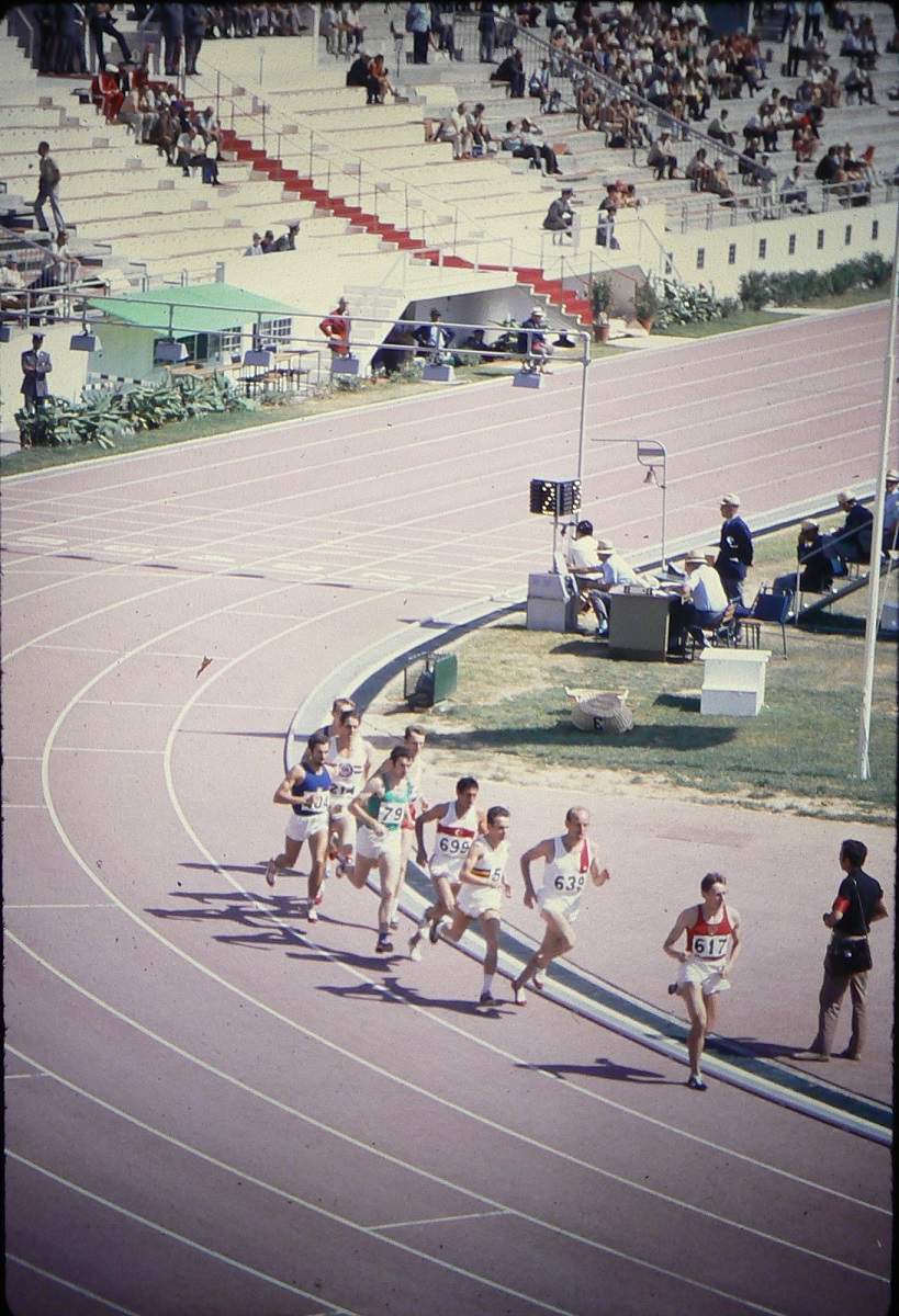 Up at 7:15 and on the road to go to European Games (16-21 Sept) in the Karaiskaki Stadium of Athens, where we saw Lilian Board (UK) win the 800 metres. Normally European Games are held every four years, but there were games in 1969 in Athens and 1971 in Helsinki instead of 1970. Mysterious! More excellent navigation to Karaiskakis Stadium near Piraeus. Walk right round stadium before we find ticket office next to subway station (groovy wooden trains). Tickets 75 Drax (£1) each, can only muster 60 - change money. Have to get police officer to take us into press/radio enclosure to get to bank. Most of this was conducted in French. Get tickets and in by 9:15. Fascinating day. A highlight was one of the lady javelin throwers spearing an official through the calf of his trouser leg! He wasn't injured but moving was difficult.