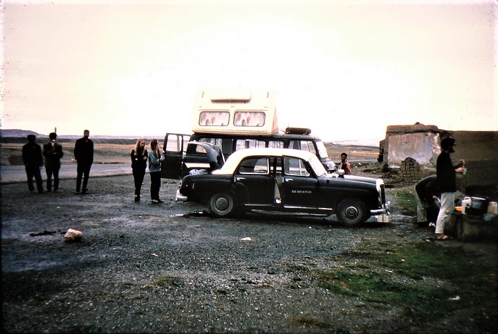 Woken about 7:30 by tractor ticking over outside, eventually got up about 8am and tuned stove which Brian had lit, but which was failing to boil the water. The whole group had coffee or tea, and we took some photos. Once again we set off with Chris, and Ian followed in the campervan. The Aussies were going to stop in Tabriz. We got there first and it was raining, we'd come 4000 miles to get a typical English October day.