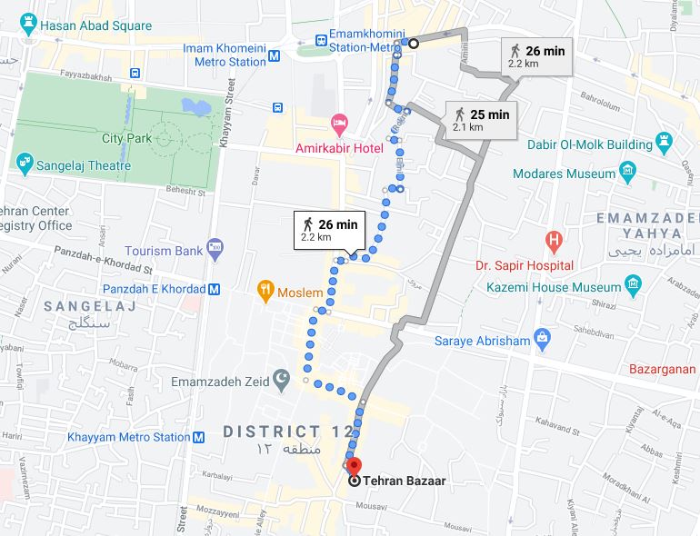 (Finding places we visited in 1969 on Google Maps can be fraught with difficulty. For example, I believe that Bouzarjomehri Avenue is now called "15 Khordard Street". General Karim Bouzarjomehri was Mayor of Tehran in the 1930s and supervised the destruction of the city wall during Reza Shah's modernisation program. "15 Khordard Street" stands for 5th June 1963 which is the starting point of the Islamic Revolution which culminated in 1979.)